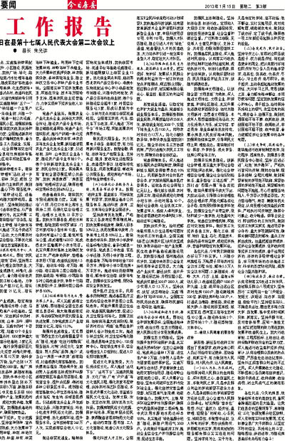 刚刚过去的一年,是我县经济社会发展中具有重要意义的一年。我们战胜了特大洪涝灾害,迎来了秦巴山片区脱贫攻坚、建设“三化”协调发展示范区的重大机遇。一年来,在县委的坚强领导下,在县人大、县政协的监督支持下,县政府紧紧依靠全县人民,以科学发展、跨越发展为主题,以项目建设为主线,坚定不移地实施“工业强县、旅游立县、农业稳县、项目兴县”战略,深入贯彻党的十八大精神,高举“三化”协调发展示范区旗帜,克难奋进,真抓实干,圆满地完成了县十七届人大一次会议确定的目标任务。