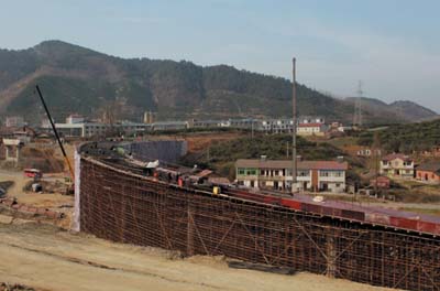 本报讯 (通讯员张燕) 6日,谷竹13标负责施工的青峰互通立交D匝道现浇连续箱梁第一联完成第一次混凝土浇筑;14日,进行第一联第二次混凝土浇筑,这标志着青峰互通立交连续梁春节前主体完工胜利在望,已进入最后冲刺攻坚阶段。