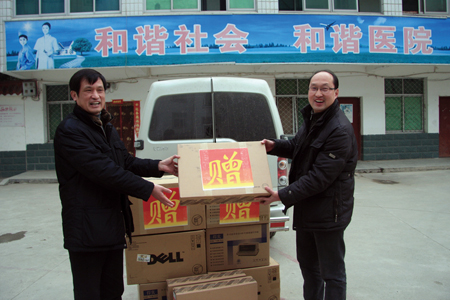 近日,为进一步推进城市医院“挂县带乡连村”支援农村基层医疗机构工作,县医院将价值2.4万元的电脑赠送给青峰卫生院,用于该院放射科建设;并为帮扶单位开展诊疗服务,组织开展技术培训,帮助其提高业务水平。 (裴中东 李琴 摄)
