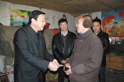 时值严冬,春节将至,带着对困难群众的深厚感情,县委书记沈明云,县委常委、县委办主任张永平,县政协副主席王学能来到军店镇双柏村一组残疾困难群众谭锡山家中,沈明云详细询问他及家人的身体健康状况和生产生活情况,送去棉被、粮、油等慰问品及慰问金。