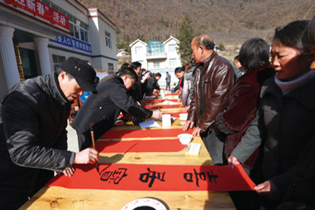 艺术家们深入野人谷镇杜川村为村民书写春联