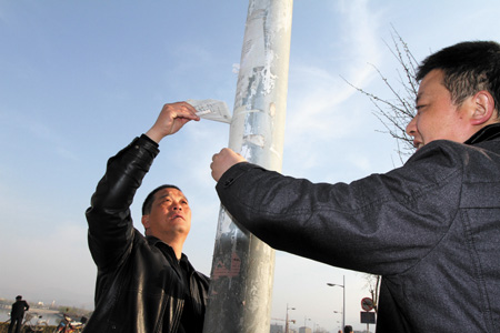 6日,县水务局和局属单位干部职工在县城武当路口清理野广告,打扫清洁卫生。当天,40多名水利干部职工参与学雷锋义务清理卫生活动。县水务系统坚持定期与不定期相结合,组织干部职工上街打扫卫生,为农村饮水困难农户安装饮水管道,10年如一日,深受广大市民和农民朋友们称赞。(张启龙 赵清艳 摄)