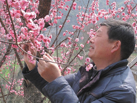 随着天气渐暖,在姚坪乡农家小院、田间地头桃花迎春盛开,散发出淡淡的清香,引来无数蜜蜂飞舞。一朵朵白里透粉,粉里透红的桃花把大地装扮得分外妖娆,引来不少人们纷纷来到这里赏花、踏青。图为姚坪乡村民赏花。(柯勇 黄治久 摄)