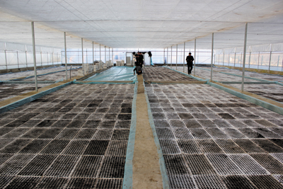 日前,记者在门古寺镇东河村烟叶漂浮育苗基地看到,工作人员正在加紧制作漂浮育苗盘,争取在一个半月内实现幼苗移栽。据了解,今年以来,门古寺镇大力发展烟叶产业,分别在项家河、东河、月日湾村兴建了漂浮育苗基地。其中东河基地占地5亩,有8200多个育苗盘,每盘200颗,移栽后,能覆盖烟叶种植地1200亩。(杨鹏 任娟 摄)
