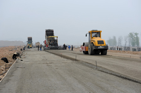 本报讯 (记者吴宏强通讯员王东) 日前,记者在县城至军店一级路施工现场看到,一辆辆工程车穿梭不歇,两辆大型水泥混凝土摊铺机正在紧张作业,施工工人正忙着进行路面平整。据现场施工人员介绍,县城至军店一级路路基工程已全部完成,于3月22日开始进行的水泥稳定路面基层摊铺项目正以每天500米的速度向前推进,县交通局共投入施工人员170余人次,施工机械80余台,目前已摊铺路面基层5公里,共计土石方14800余方。
