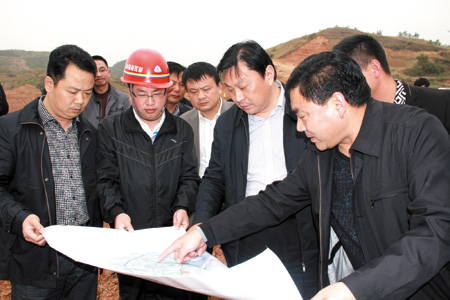 图为县委书记沈明云(右二)等领导在北城工业园区调研
