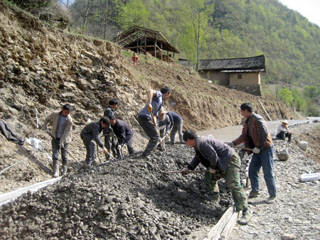 今年以来,上龛乡党委政府以让群众脱贫致富作为项目组织实施的抓手,坚持计划早安排、测设早组织、筑材早储备、项目早开工。图为该乡仓坪村五台沟通村公路修路现场,这条通村水泥路竣工后,不仅能改善群众生产生活环境,更可以带动产业快速发展,促进农民增收,早日致富奔小康。(刘丹 摄)