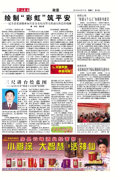 针对我县2000多公里山区道路交通管理出现的难点和问题,任晓林在县局和大队领导的支持下,按照县委县政府提出的“完善城市形象理论设计,打造无视觉污染城市”的工作要求,不断完善交通标志、标线等交通管理设施,先后主持推出自发光车道指示牌,凸起夜间发光路标、彩色人行横道线、彩色机非隔离墩,对角斑马线等创新的交通标志标线和交通设施,充分展示了“交通语言”人性化、规范化和美学特性魅力。去年10月,为进一步规范人车道路交通行为,任晓林带领工作专班,通过实地丈量勘查,确定神农路、房陵大道为安装道路交通中心护栏路段,得到县委县政府支持;从江苏省进回高质量的热镀锌道路中心护栏,抢时间、抓进度、精心施工,不到半个月时间,完成房陵大道、神农路3600米道路中心护栏和反光标识安装加固任务,成为房县城区一道靓亮风景。