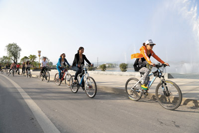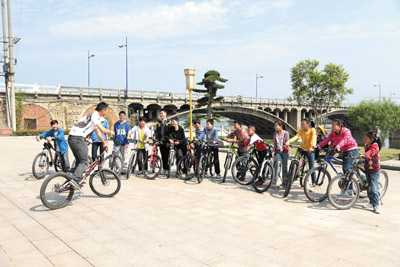 流动风景,文体职工骑行滨河路