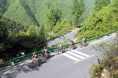 感受变化,山地自行车爱好者骑行竹房城镇带