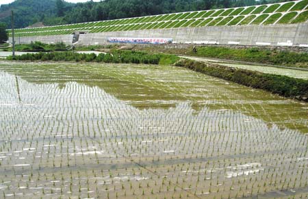 春播以来,窑淮镇以促进农业稳定发展、农民持续增收为核心,积极推广水稻地膜覆盖规范化栽培技术(如图)。据了解,地膜水稻不仅具有“节水、增温、除草、高产、高效”的良好栽培功能,而且可以减少稻田甲烷、一氧化二氮等温室气体向空气中排放。目前,该镇大部分农民都采取了水稻地膜覆盖种植新技术,为水稻高产技术的全面推广奠定基础。