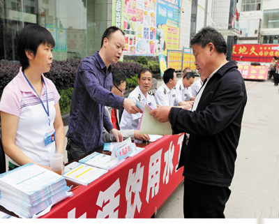 17日,县卫生监督局和县慧泉水业公司联合开展了生活饮用水卫生安全宣传咨询活动。活动主题是:“科学认识饮用水,健康惠及千万家”;目的是宣传饮用水安全卫生知识,增强民众对饮用水安全卫生意识。现场发放饮用水宣传资料4000多份,咨询人数200余人(次)。当日,工作人员还深入社区进行了末梢水现场检测。 (赵爱平 全丽 摄)