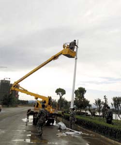 近日,县路灯管理所工作人员正在滨河大道(孙家湾大桥至工业园大桥)安装路灯(如图)。自20日以来,县路灯管理所干部职工抢晴天、冒雨天、战高温,积极为滨河大道安装路灯。经过一个星期的奋战,目前,已安装完路灯50盏,铺设电缆2000米,路灯已全部投入使用。 (全娟 摄)