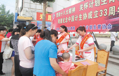 28日,县计生局、计生协在寿康生活广场门前举行大型宣传服务活动,以此庆祝中国计生协成立33周年。