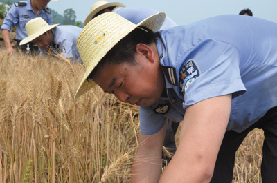 23日早上,5位穿警服的小伙子来到姚坪乡西坡村袁平富家帮忙收割小麦。我县是国家级贫困县,全县人口不到50万,而外出务工的青壮年超10万人,每到夏秋农忙季节,不少老弱妇幼留守家庭就发愁。县公安局成立21个助农帮工队,切实解除农民的后顾之忧。