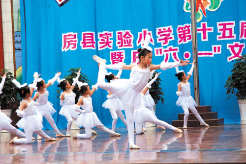 房县实验小学把“以人为本、质量是根、特色为翼”作为办学理念,通过丰富多彩的文体活动让师生分享快乐。