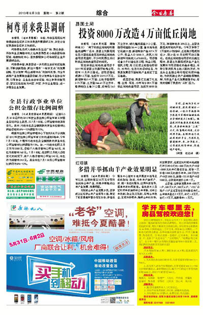 本报讯 (通讯员刘霜 周海柯启文) “剩下的低丘岗地啥时候能改造啊?”近日,县国土资源局局长吕兴国在检查军店镇低丘岗地改造项目质量时,不少村民围过来打听低丘岗地改造项目的情况。