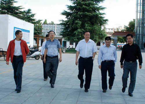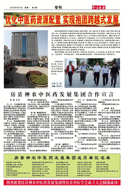 十堰市政协副主席、市卫生局局长黄剑云(右三)等领导莅临房县中医院指导工作。