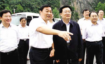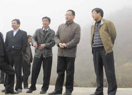 省长王国生,省政协副主席陈天会,市委书记周霁在县委书记沈明云的陪同下视察农村环境连片整治示范区