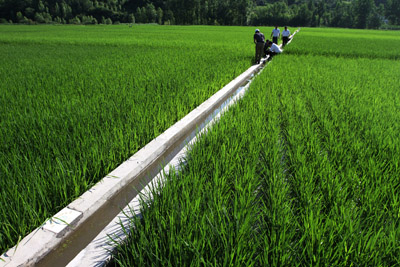 26日,窑淮镇观音堂村600多亩连片农田,在汨汨清泉滋润下,秧苗长势喜人(如图)。近年来,我县投入小农水水利项目资金1.8亿多元,兴建高效节水渠道691条,防渗加固跑、冒、漏、滴旧渠道583.1公里,随着城关、红塔、军店等9个中部平坝地区产粮重点乡镇小农水建设项目的陆续完工,项目区内的12.5万亩农田得到有效灌溉,水利用率由过去的40%提高到85%,年均实现节水1660多万立方米。 (张启龙 摄)