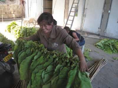 7日,笔者在中坝乡看到,各村烤炉集中开工,处处烟叶飘香。今年该乡共种植烟叶3500亩,预计产值将达1200万元。据了解,今年以来,该乡拿出35万元对种烟进行奖励,同时创新思路,通过适当发展烟叶面积,优化烟叶结构,强化烟农素质,积极打造宝石、龙滩、中坝三个千亩村,有效确保烟叶收益。图为烟农正将烟叶搬进烤房。 (程明 摄)