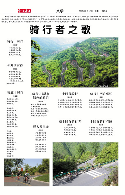 编者按:今年以来,随着低碳环保、健康向上的生活理念深入人心,县文体系统90%的干部职工购买了山地自行车,在锻炼身体、体验运动带来快乐的同时,欣赏了沿途美丽的自然风光,极大地提升了干部职工的精神区位。“十回首”是我县野人谷镇境内、武神生态旅游线上一段曲折、美丽的盘山公路,因有十道转弯而得名,被誉为“骑行爱好者的天堂”。近日,县文体局数十名骑行爱好者利用双休骑行“十回首”,并写下诗歌十余首,现编发些许,以飨读者。