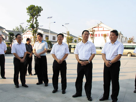 积极探索扶贫搬迁、生态移民、产城互动、连片开发、扩容扩能、商贸流通等建设模式,走出了具有山区特色的小城镇建设之路。图为张昌尔、周霁一行视察军店镇双柏移民搬迁小区。