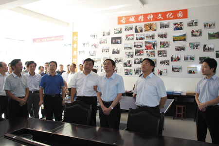 “十星级文明农户”评选全面铺开,道德讲堂建设开花结果。代表十堰市现场参观点,顺利迎接全国精神文明建设现场会领导的现场观摩。图为省、市、县领导在化龙堰镇古城村参观“精神文化园”。