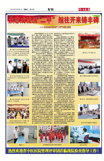中医院人正以无比的热情、高度的主人翁精神建设我们的事业,相信在各级领导的正确领导下,全院职工的共同努力下,一定能取得“国家二级甲等中医医院”的称号,在医药卫生体制改革的新时期,为房县中医药事业谱写出绚丽的篇章。