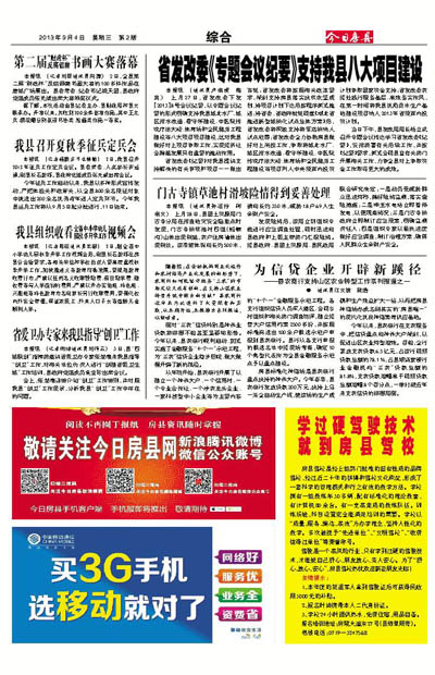 本报讯 (通讯员卢启虎 施真) 上月27日,省发改委下发【2013】8号会议纪要,以专题会议纪要的形式明确支持我县城北水厂、城区排水改造、看守所建设、中医院传统疗法大楼、体育场和全民健身工程建设等八大项目项目建设,这对我县做好对上项目争取工作,实现经济社会跨越发展具有重要的推动作用。