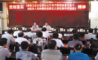 日前,县人民医院召开全体医生会议,共同学习《国家卫生计生委办公厅关于陕西省富平县个别医务人员涉嫌拐卖新生儿恶性事件的通报》。该院要求,全体医务人员要依法规范母婴保健技术服务,对照规定和要求照镜子、找问题、摆不足,并扎实开展自查和督导检查,真正做到健康所系、生命相托,履行大医精诚、救死扶伤的神圣职责。(裴中东 摄)
