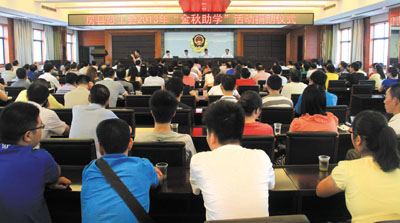 在今年的“金秋助学”活动中,县恒通公司、供电公司、湖北神农本草中药饮片公司等单位和社会各界爱心人士纷纷慷慨解囊,13个乡镇也踊跃参与捐赠。沙河乡还成立了由本地在外创业成功人士刘帮学发起的“帮学基金会”, 刘帮学表示今后每年捐赠“金秋助学”的资金不少于5万元。沙河乡党委书记、乡长各资助2名,其他班子成员各资助1名,共资助了14名困难学子(其中大学生12名,高中生2名)。