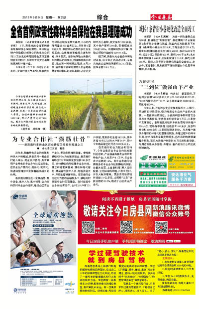 本报讯 (记者吴宏强通讯员任华斌) 3日,我县完成全省首例政策性森林综合保险理赔。中华联合财产保险股份有限公司房县支公司将22万余元的保险赔偿金支付至县财政专用账户,专项用于受灾公益林的抚育和补植补造。