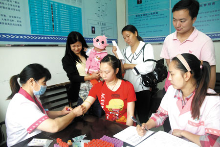 今年以来,红塔镇多次邀请县计划生育服务站医务人员,深入村组和流动人口集中的地方免费为育龄夫妇进行孕前优生健康检查(如图),免除育龄群众来回奔波之苦。此项活动自5月份开展以来,已为600多对符合条件的夫妇提供了免费孕前优生健康检查服务,受到广大群众欢迎。 (陆静 车晓先 摄)