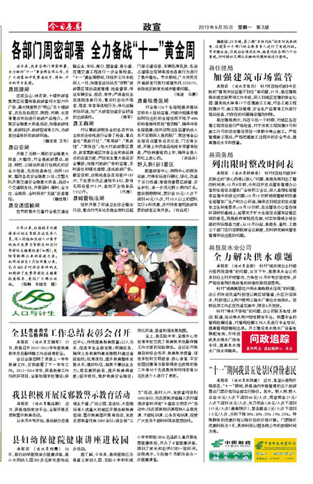 各部门周密部署 全力备战“十一”黄金周
