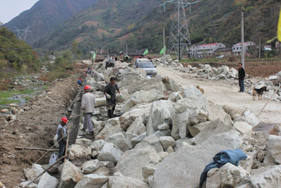 近日,记者在“十竹”路大木厂路段看到,道路施工人员正忙着搬运石料,拓宽路基。“十竹”路全长52公里,总投资超过4.5亿元,其中大木厂路段全长13.8公里,路基宽度8.5米,目前已完成工程量三分之一,工程进展顺利。(杨鹏 王昌合郑舒鑫 摄)