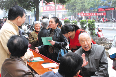 为广泛普及《老年法》知识,维护老年人合法权益,营造依法推进老龄事业发展良好社会氛围,23日,县老龄办联合县老干局、县司法局,在新十字街开展新《老年法》宣传活动,向过路老年人和群众发放宣传资料,并重点向他们讲解新《老年法》的内容和亮 。(彭正诚 摄)