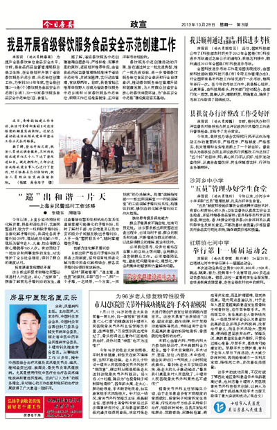 我县开展省级餐饮服务食品安全示范创建工作青峰镇对违法搭建的棚厦实施拆除“巡”出和谐一片天——上龛乡民警巡村工作述略房县中医院名医风采为96岁老人修复粉碎性股骨 市人民医院骨关节外科成功挑战老年手术年龄极限县扶贫办行评整改工作受好评我县顺利通过2013年全国县(市)科技进步考核