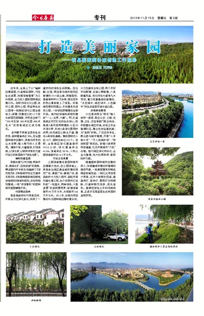 近年来,全县上下以“编制创建蓝图,打造精品园林,巧绘生态美景,加强绿地管理”为工作思路,全力投入国家园林城创建工作。目前,诗经文化公园、滨河公园、西河公园、观音洞生态公园等一批精品绿化公园全部竣工;新建、改建完工的13个街头游园花团锦簇,市民走出家门“300米见绿、500米见园、800米见水”在我县城区已成为现实。