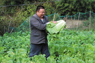 近年来,该姚坪乡积极引导和帮助农民推广建设沼气池,发展生态农业,全乡现已建设沼气池1000余口,沼液、沼渣综合利用种兴无公害果、茶、药、菜面积达2万余亩。虎尾沟村村民黄治清拿着一棵大白菜高兴地说:“今年产的蔬菜收入好几千元,沼液、沼渣真是个宝。” (柯勇 黄治久 杜达琼 摄)