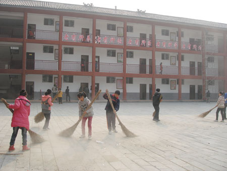 21日,大木厂镇组织部分干部职工、团员赴镇福利院开展“奉献,让福利院环境更美好”活动。活动中,大家有的挥舞着扫帚清扫庭院、擦洗栏杆、窗台,有的与老年人聊天谈心……很快福利院里变得干净整洁,处处洋溢着温暖的气息。图为学生在打扫福利院卫生。 (王昌合 郑舒鑫 摄)