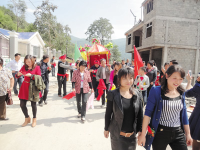近日,一顶挽着大红绣球的花轿在众人的簇拥下,来到九道乡九道梁村一组村民陈祖华家中迎娶新娘。原来,陈家女婿来自荆门,为给自己的婚礼增添喜庆氛围,新郎不远数百里带来花轿迎娶新娘,让大家亲眼目睹了这一鲜见传统习俗的独特魅力。