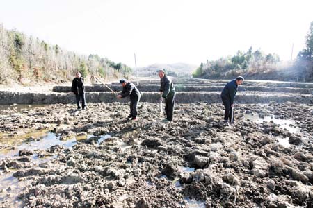 入冬以来,沙河乡积极开展农田水利基本建设。日前,已新修白沙河村水渠2000米,新修火光村河堤2500米,改造卢家坪村胭脂米示范基地200亩。全乡农田水利基本建设正在轰轰烈烈的开展。图为27日卢家坪村胭脂米种植示范基地改造现场。(赵爱平 田华锐 刘伟 摄)