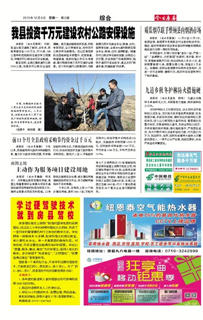 截至目前,全县已建成通村公路2590公里,加强农村公路安全迫在眉睫。县交通运输局抢抓机遇,积极争取项目,全力筹措资金,加快农村公路安保设施建设。在山区高危路段先因地制宜采取警示、拓宽路基、湾道曲直、堆放防撞土和石头等措施,最大限度的减少农村交通安全隐患。在今年的通村公路建设时,与路面硬化同步实施会车台、路肩、边沟、涵洞等设施,全县80%通村路都实现会车台、路肩、边沟、涵洞配套。随着农村公路安保设施的完善,该局在公安交警、安监等部门实地勘测后,陆续开通农村客运班车,真正达到“路通车通,财通政通”的效果。