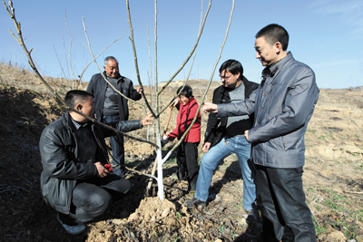 日前,白鹤镇林业技术人员正在长龙村向村民讲授核桃树管护技术。入冬以来,该镇林业技术人员下到农户积极传授果树施肥、修枝、防虫等管护技术,受到果农好评。