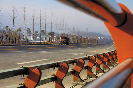 日前,记者在已全线通车的县城至军店一级路北门河至军店路段看到,各类车辆在宽敞的双向六车道上快速行驶。县城至军店一级路是今年全县十大项目之一,项目起于白鹤镇解湾村,止于军店镇,全长19公里,由县交通运输局组织实施。该项目对进一步拓展城市空间、缓解城区交通压力、推进竹房城镇带建设、促进全县经济社会发展具有至关重要的作用。截至目前,该项目一期工程基本完工,全线路基基本完成,完成路面13公里,累计完成投资3.1亿元。图一为沿线桥梁护栏已经安装完成;图二为宽敞通畅的一级路通车路段。 (吴宏强 王东 摄)