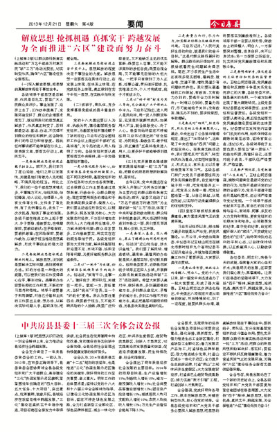 (上接第3版)以群众路线教育实践活动和“万名干部进万村惠万民”新“三万”活动为契机,切实转变作风,确保“六区”建设任务全面落实。