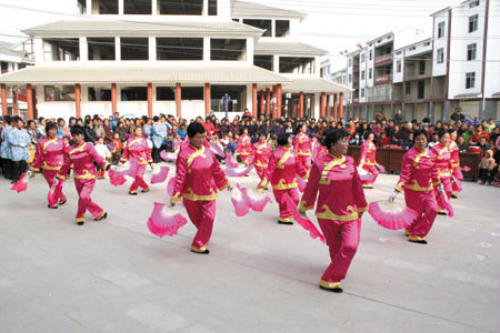 活动中,军店镇多支民间演出队伍组成方阵,走上街头,踏着舞步、扭着秧歌进行游行。随后,在军店街文化广场,演出队伍通过民间歌舞、现代街舞、三句半、快板演奏等精彩的表演,为全镇居民献上了一场精彩的文艺大餐。活动现场欢声笑语、喜气洋洋,一派红红火火的热闹景象。(兰晶 摄)