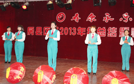 一年来,寿康永乐集团房县区域秉承“便利、平价、优质”的经营理念,竭诚为广大消费者提供优质的商品和服务,也为我县商贸经济的发展做出了积极贡献。20日,寿康永乐集团房县区域召开2013年度总结表彰暨迎春晚会。总结寿康永乐房县区域2013年取得的成绩,展望和部署新一年的工作,并对区域内30多个先进部门及个人给予表彰。图为活动现场。(雷洁 王丽君 摄)
