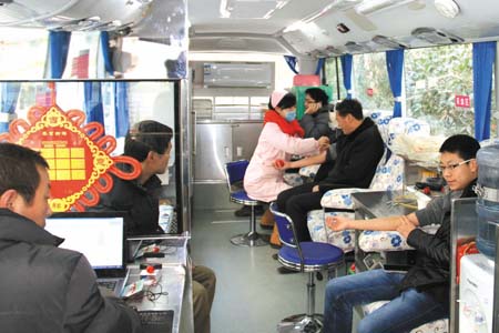 21日,县疾病预防控制中心开展义务献血活动,中心职工来到市中心血站在该单位内停靠的采血车,踊跃献血,献出自己的一份爱心。一名职工说:“无偿献血既能促进血液更新,有利于身体健康,又能帮助到患者,我感到很高兴。”据了解,当天仅1个多小时,该单位大部分职工都参加了献血,附近多名群众得知此事后也积极献血。(邓发基 摄)